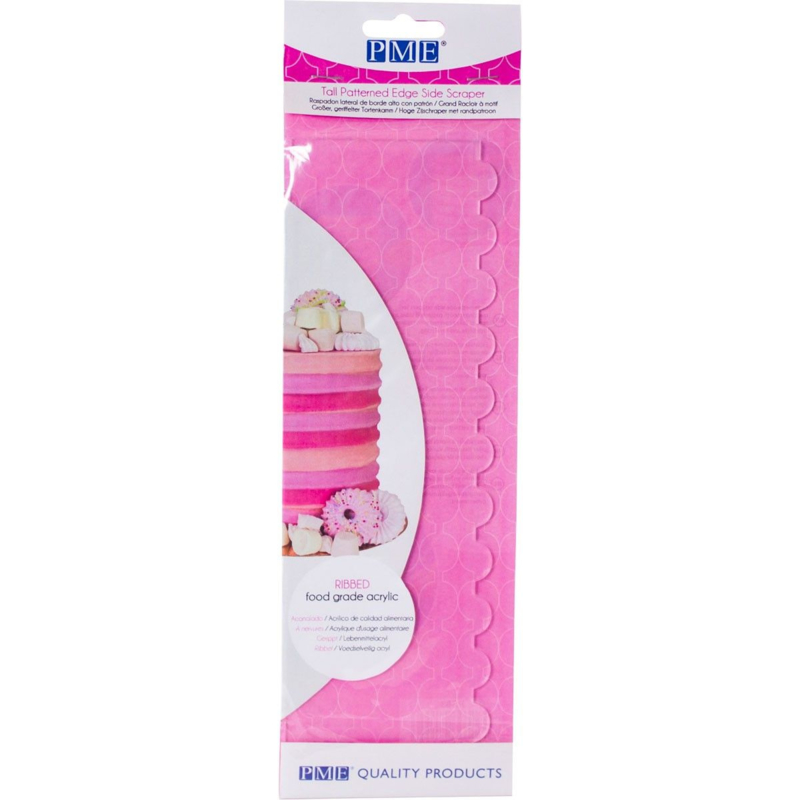 ÜbersichtBereiten Sie wunderschöne Buttercremetorten mit geripptem Muster mithilfe dieses praktischen Scrapers von PME zu! Sie können die beiden Seiten des Scrapers verwenden, eine Seite ist glatt und die andere Seite hat ein geripptes Muster. Der hohe, gemusterte PME Side Scraper ist auch für den Einsatz mit Schokolade oder Royal Icing geeignet.