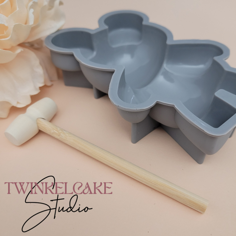 ÜbersichtSchokoladenform aus Silikon in Form eines Bären, inklusive Hammer.