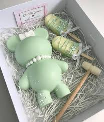 Schokoladenform aus Silikon in Form eines Bären, inklusive Hammer.