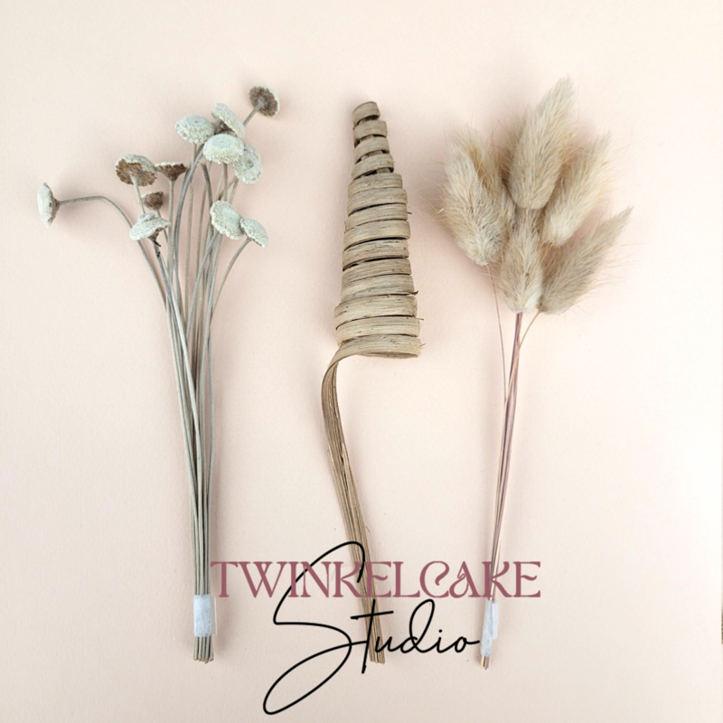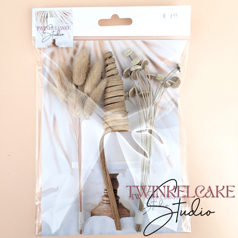 Blumenstrauß aus getrockneten Blumen zum Dekorieren von Torten.