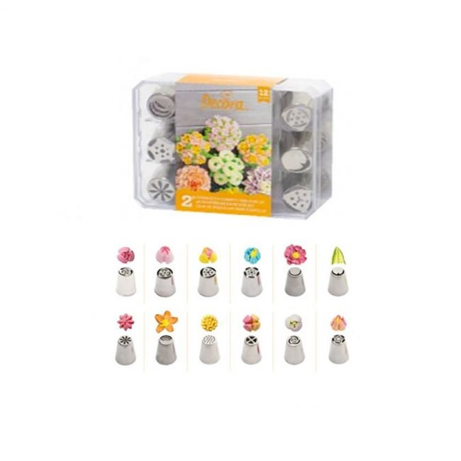 OverviewPractical plastic box with 12 special nozzles for direct flowers; perfect for creating 3d flowers directly on cakes and desserts with a simple movement of the piping bag. With plastic organizer box for storing and organizing the tools in a practical way