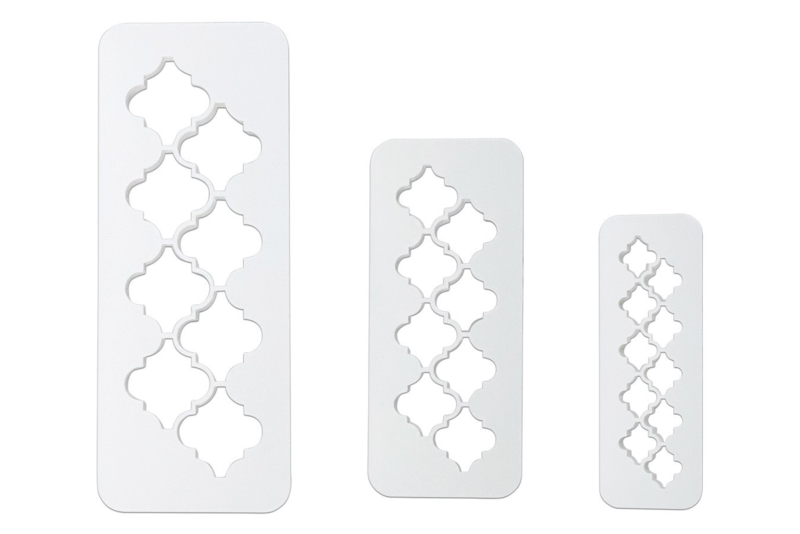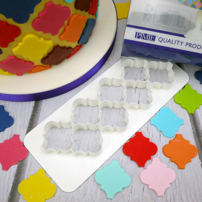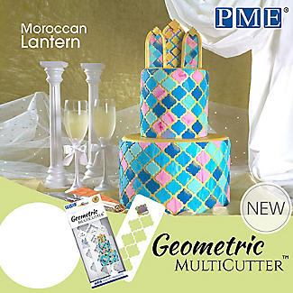 OverviewCreate stunning cakes with the PME Geometric Multicutter Moroccan Lantern Set! They are engineered to perfection and cut clean, sharp shapes. The cutters can be used with a variety of materials like rolled fondant, sugar paste, marzipan, gum paste, modelling candy and polymer clays. This tool is great for beginners, but also for professional cake decorators and home bakers. This set contains three cutters in three different sizes.