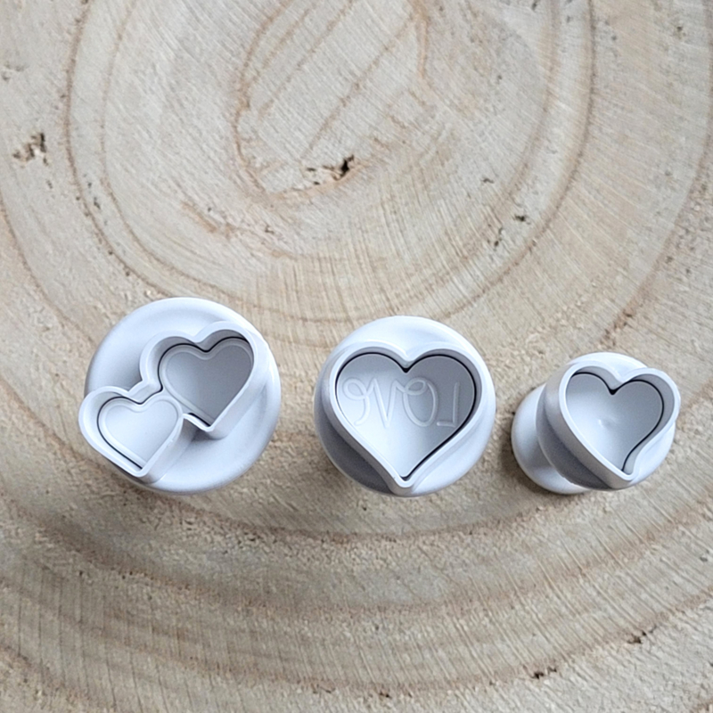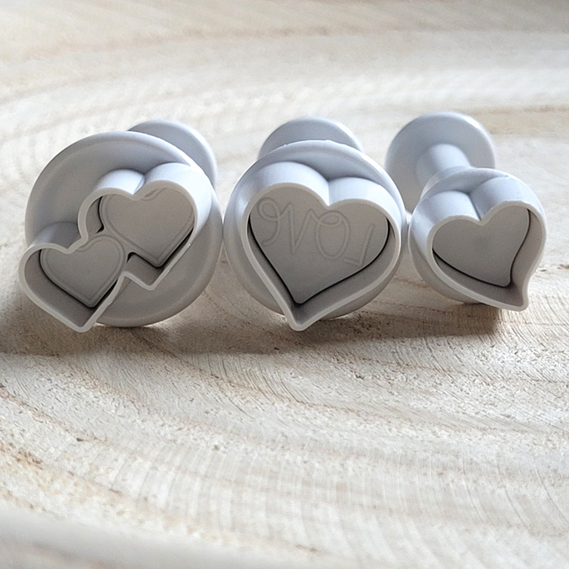 Overview3 plungers of hearts for cookies or sugarpaste.