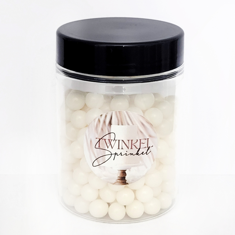 AperçuPerles de sucre blanc intense de 7 mm pour la décoration de gâteaux, cupcakes, donuts et autres pâtisseries. Parfaites pour des thèmes tels que les mariages, les scènes hivernales, etc.