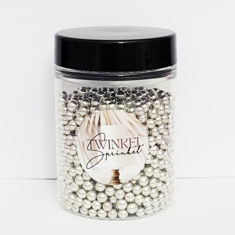 AperçuLes perles de sucre comestibles de Twinkel Sprinkel de couleur argentée ont un diamètre de 4 mm. Ces perles de sucre permettent de façonner de nombreux éléments décoratifs, tels que le cœur d'une fleur ou le bord d'un gâteau. Elles sont conditionnées dans un flacon saupoudreur pratique.