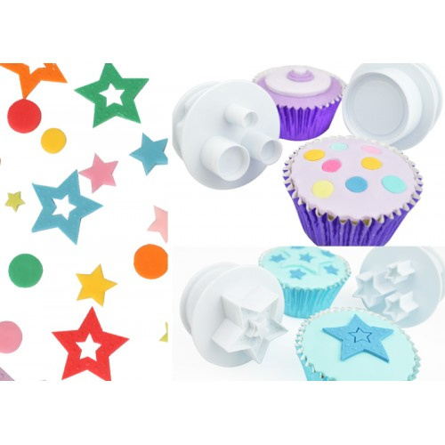 AperçuRéalisez facilement des ronds, des cœurs, des étoiles, et autres formes grâce à cet ensemble de 6 emporte-pièces avec piston de Cake Star. 6 emportes-pièces qui vous permettront de créer pas moins de 12 formes différentes ! Parfaits pour la décoration de gâteaux, de cupcakes et d'autres douceurs.