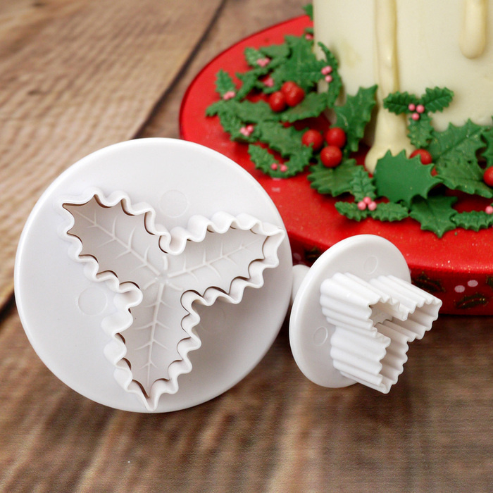 2 emportes-pièces de feuilles de Houx (à 3 feuilles). Très facile a utiliser avec un effet rapide.