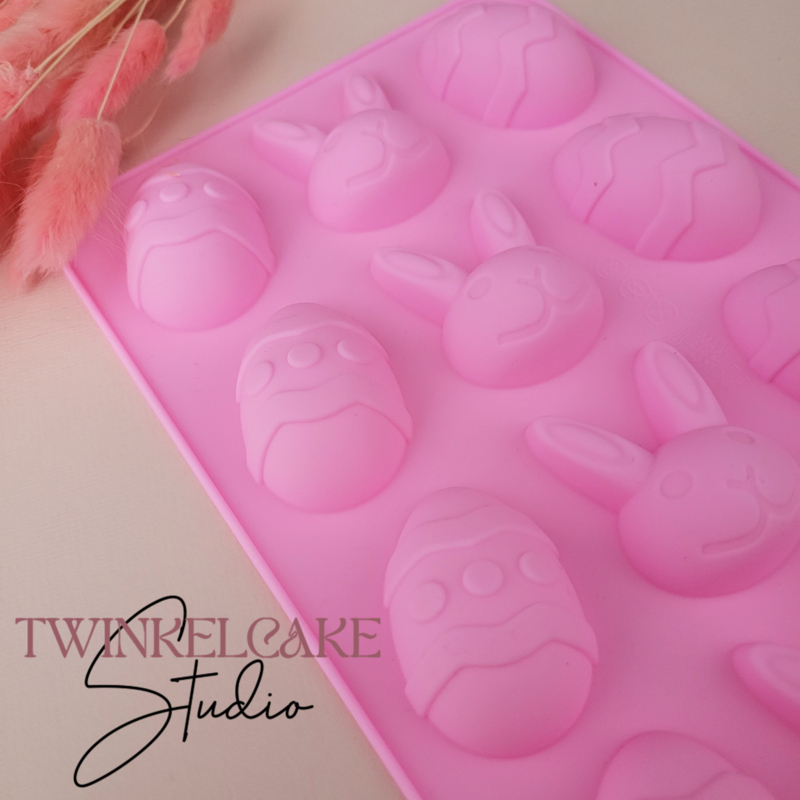 AperçuMoule à chocolat en silicone avec 3 différentes image (2oeufs de Pâques et un lapin).